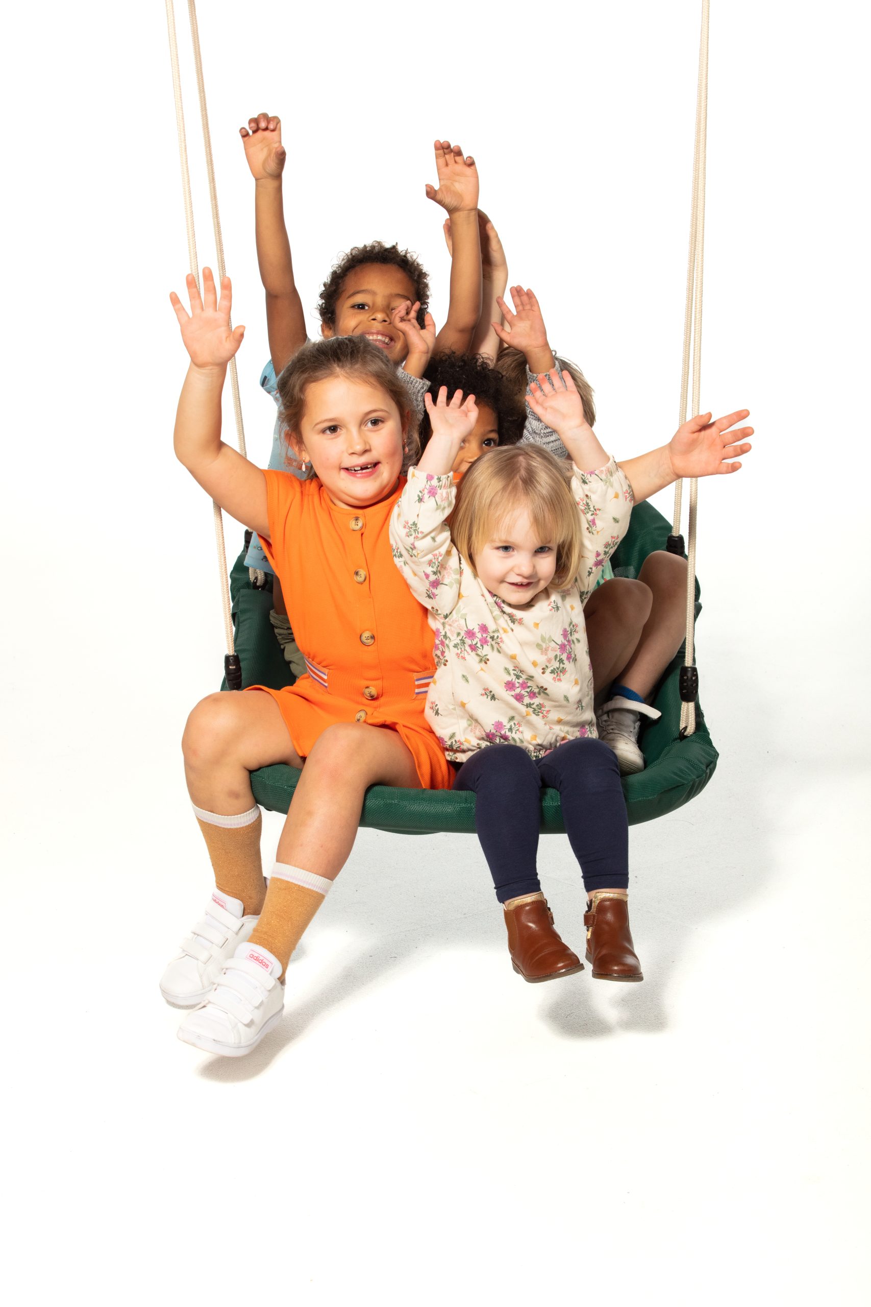 Dark Green Nest Swing with Beige Braided Ropes – Adjustable, Weather-Resistant & EN71 Certified