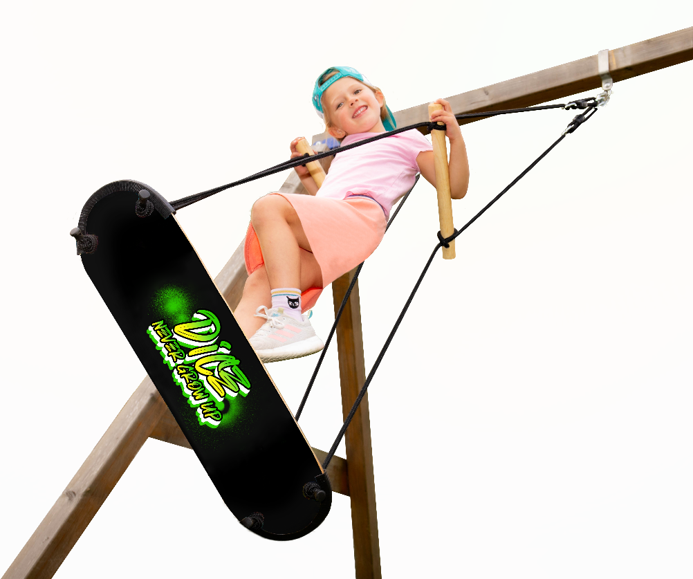 Our Super Fun Skateboard Swing combines the thrill of skateboarding with the joy of swinging for nonstop outdoor excitement. Designed to look and feel like a real skateboard, this swing lets kids stand, sit, or surf the air while building balance, coordination, and confidence.